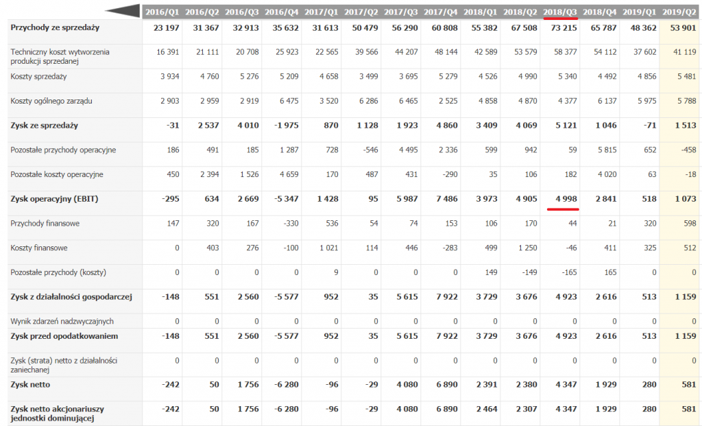 Z tym, że warto pamiętać, że cena zysk to są historyczne wyniki. A jak napisałem zaraz wypada dobry, trzeci kwartał 2018.